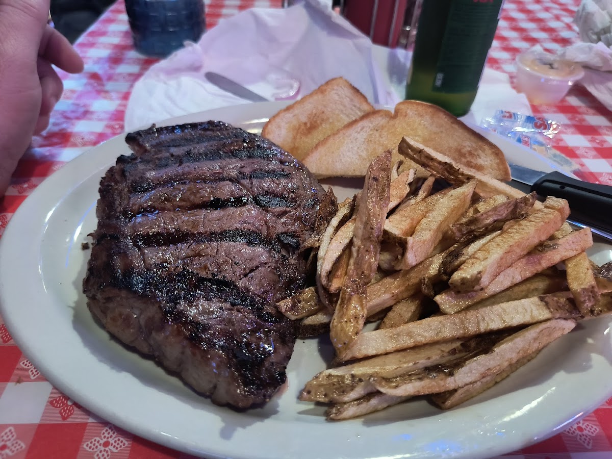 This place is best known for its generous steaks, with the ribeye often getting nods as a go-to choice. Beyond steak, you’ll find a range of traditional Southern and Tex-Mex dishes — think fried catfish, enchiladas, and hearty breakfast plates like bacon and eggs with potatoes. The menu also flexes from casual lunch fare like club sandwiches and nachos to more filling specials such as meatloaf or stuffed baked potatoes topped with brisket. It serves well whether you’re stopping by quickly for lunch or settling in for a relaxed dinner.